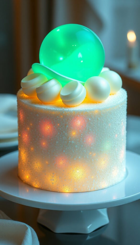 A translucent sugar sphere sits on top like a glowing gemstone.