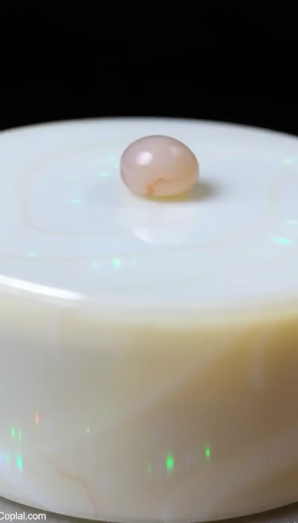 White or ivory frosting is speckled with pearl dust to mimic the shimmer of fine opalite flecks.