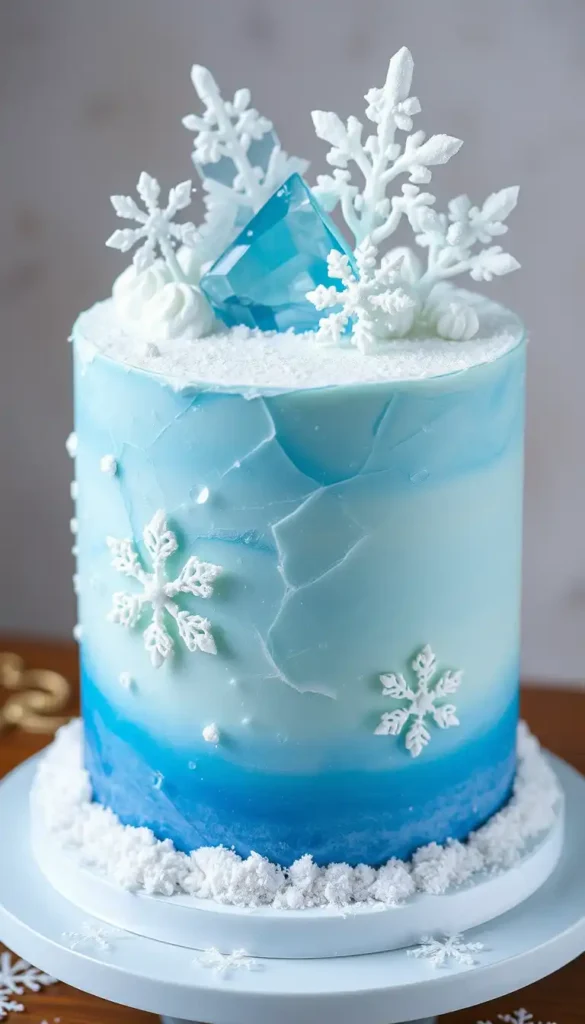 Snow-like shimmer, icy blue tones, and frost accents create a magical winter design.
