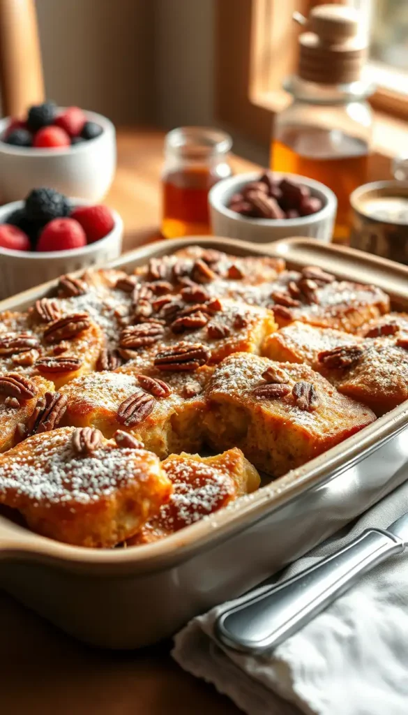 Preparing French toast casserole overnight means less morning stress. You can mix everything in the evening, pop it into the fridge, and bake it fresh in the morning. This also allows the bread to soak up the custard fully, resulting in a tender and flavorful dish that’s difficult to achieve with quick-cooked French toast.