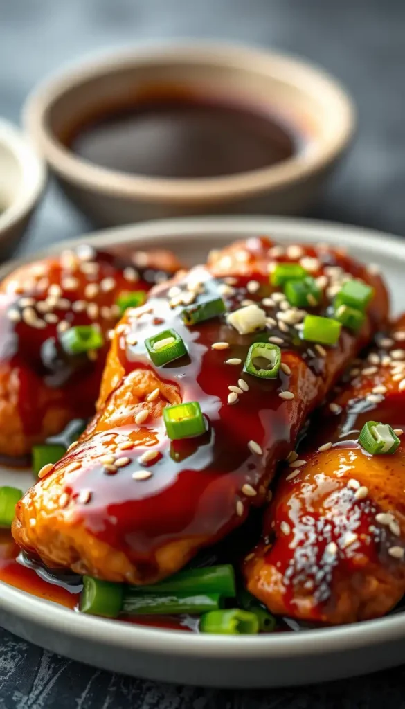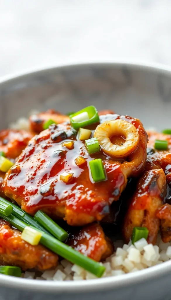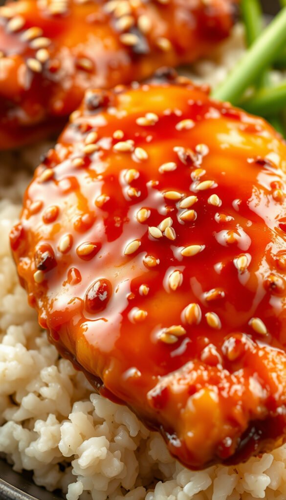 Pan fry chicken, add sauce, and cook until glossy and caramelized.