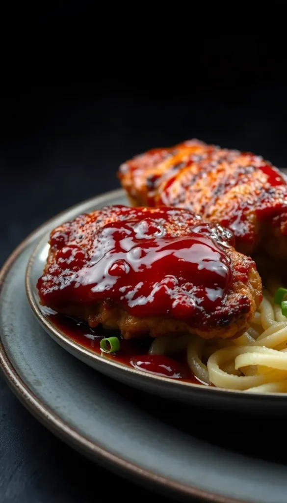 Pan fry chicken, brush with BBQ sauce, and caramelize lightly.