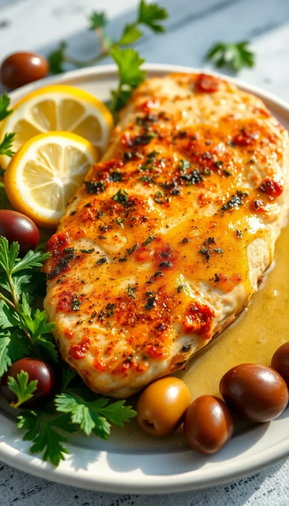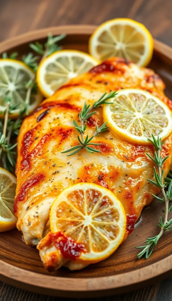 Marinate chicken briefly in lemon and herbs. Pan fry until golden. Finish with extra lemon juice.