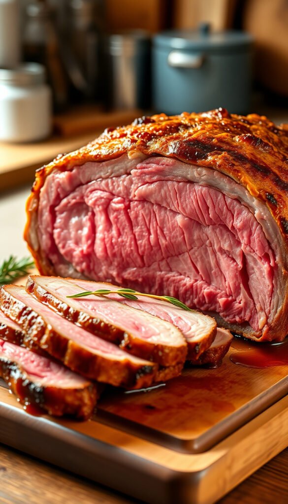 Tie the roast with butcher’s twine, season well, and roast evenly for juicy slices.