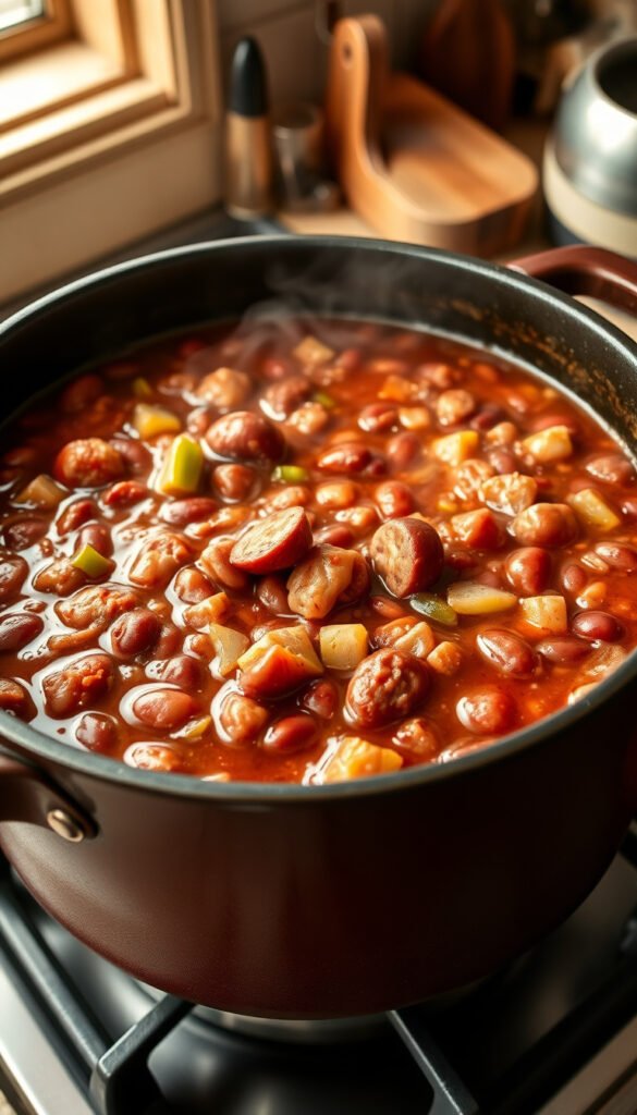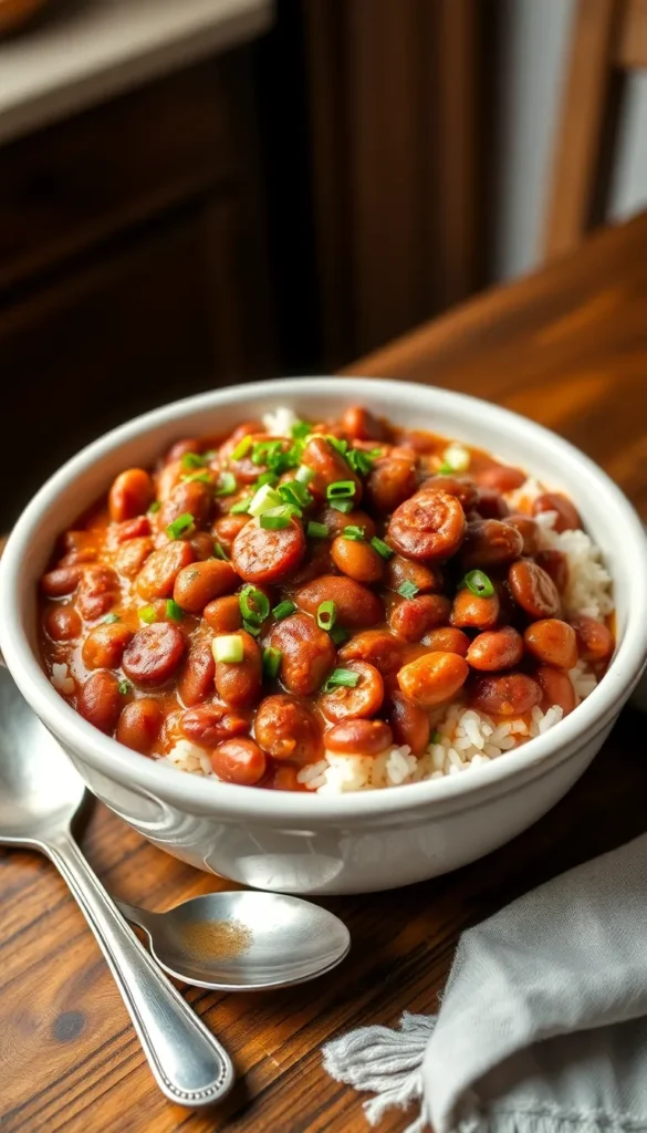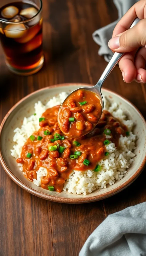 The result is a creamy, flavorful bean stew served hot over white rice, often garnished with chopped green onions or parsley. It’s a budget-friendly, protein-packed meal with rich Southern roots.