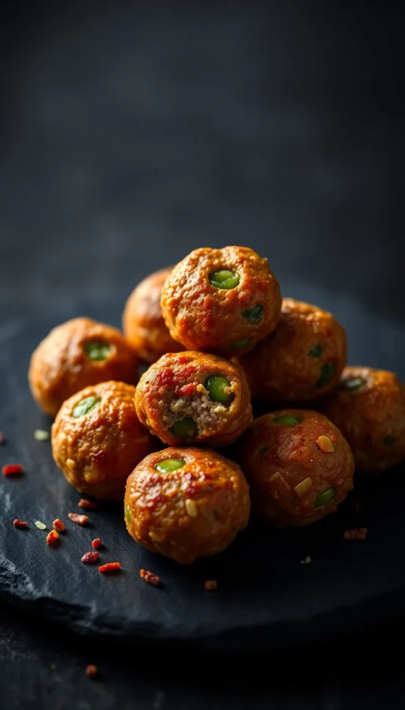 Combine ingredients, form balls, and bake at 375°F for 20 minutes. Perfect for heat lovers.
