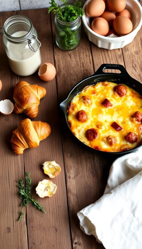 Breakfast casseroles are beloved for their convenience and flavor. The sausage egg and croissant breakfast casserole stands out because it combines three classic breakfast ingredients in one dish: