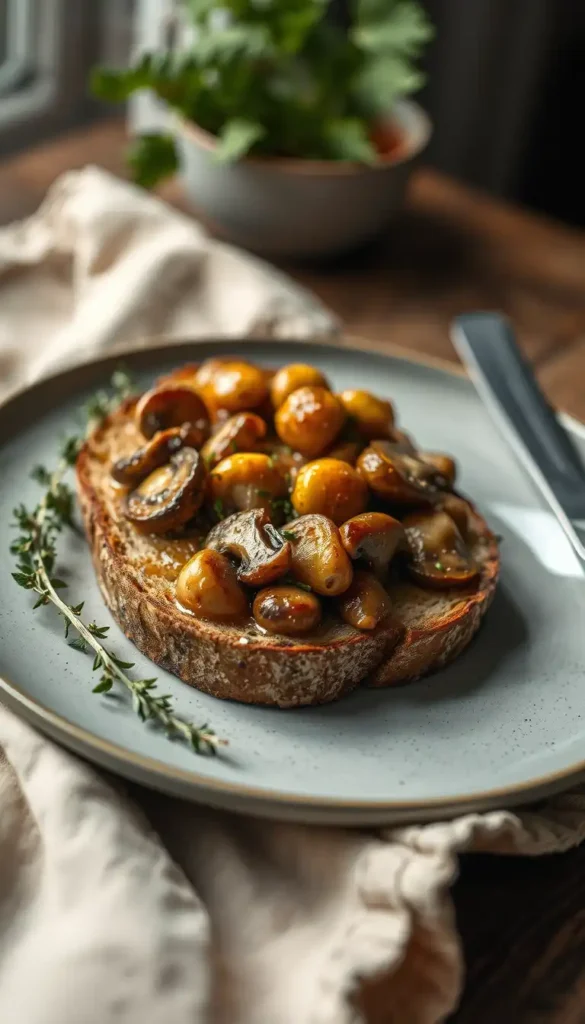 Sauté mushrooms with garlic in olive oil until golden. Spoon over toasted bread and finish with salt. This lunch proves that simple vegan lunches with 5 ingredients can still feel gourmet.
