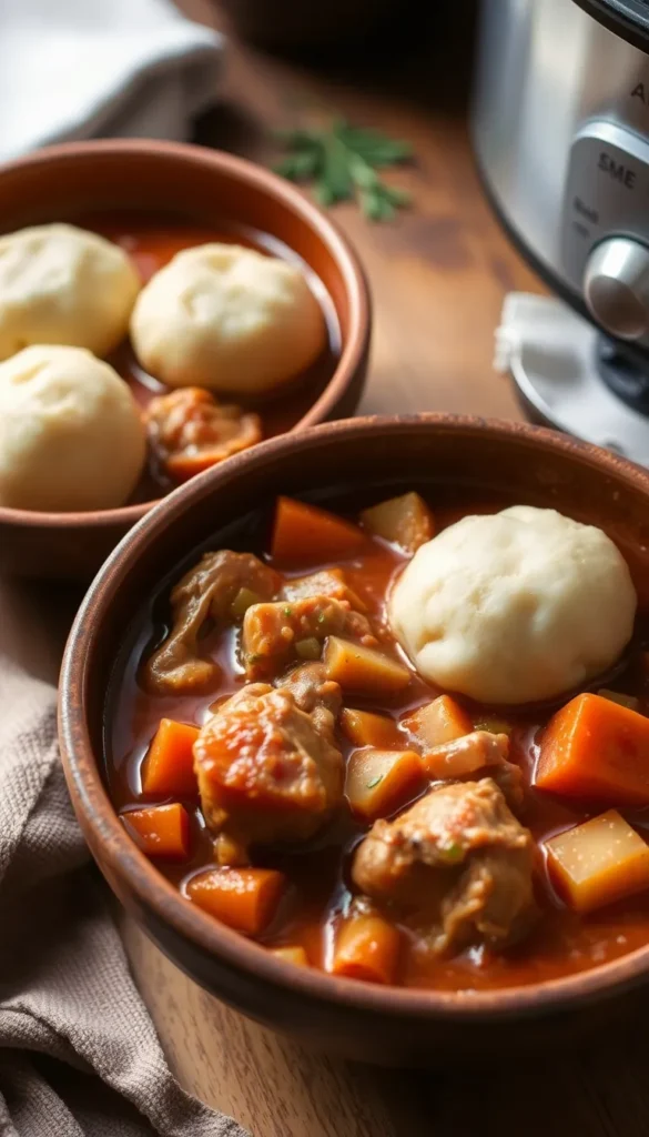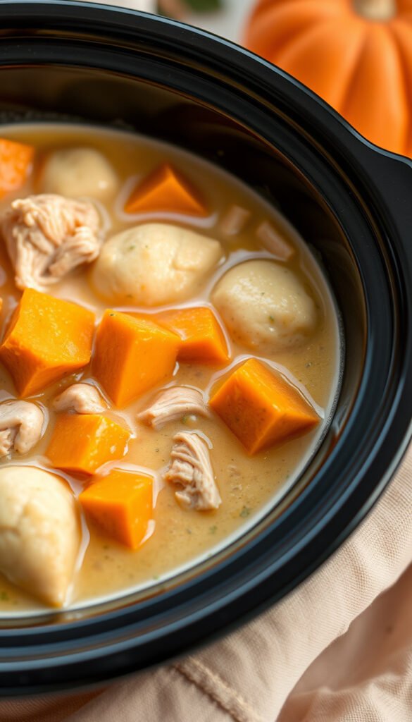 Slow cookers are designed for dishes that thrive with long, gentle cooking. Chicken becomes extra tender, vegetables develop deeper flavor, and the dumplings soak in broth while staying soft and pillowy.