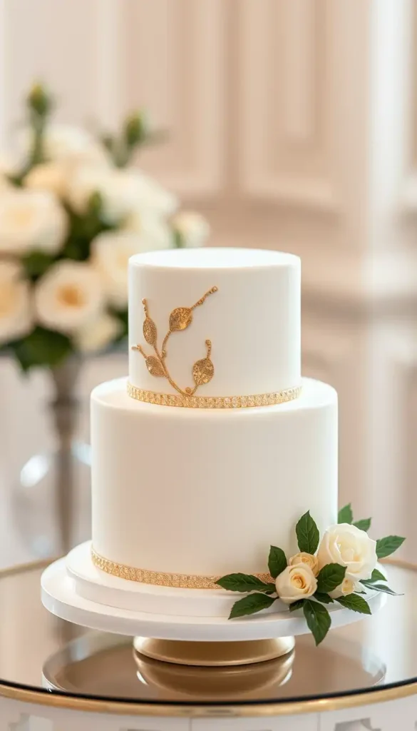 33. Gold Leaf White Wedding Cake