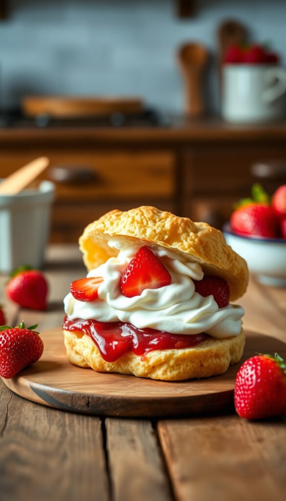- Split shortcakes, fill with strawberries and cream, and serve.