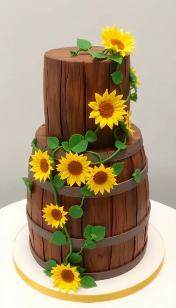 8. Barrel-Shaped Cake with Fondant Sunflower Vines