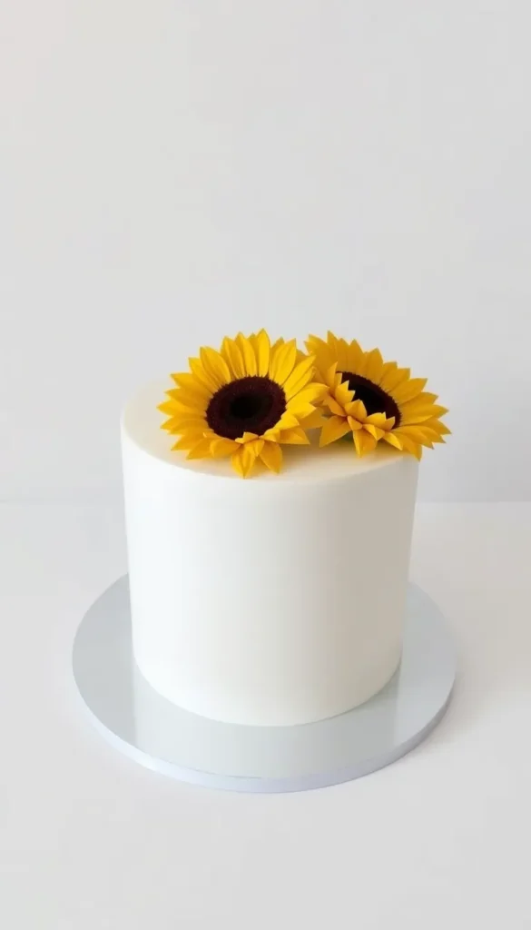 11. White Fondant Cake with Delicate Sugar Sunflowers
