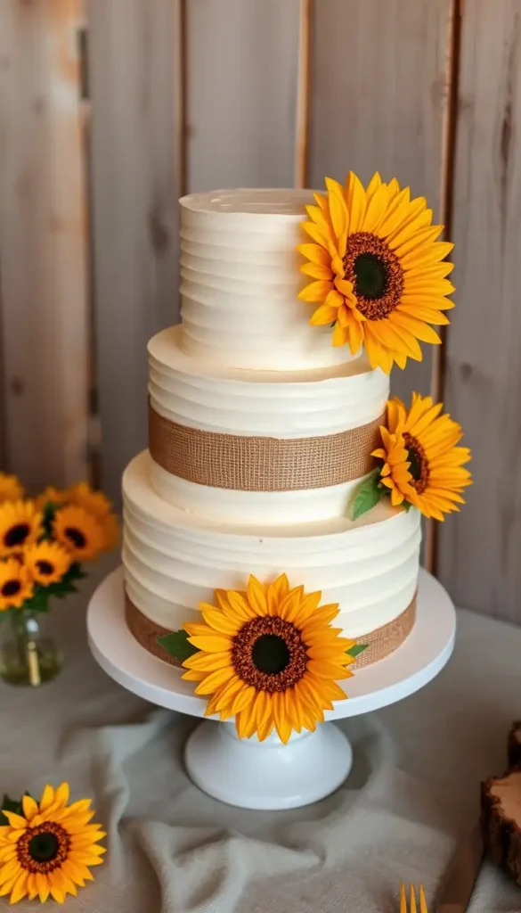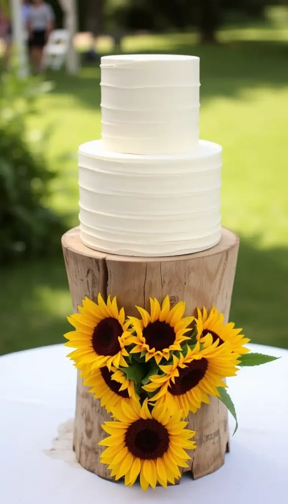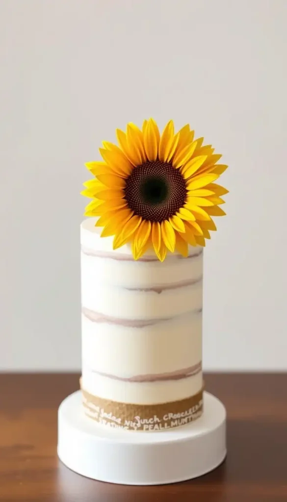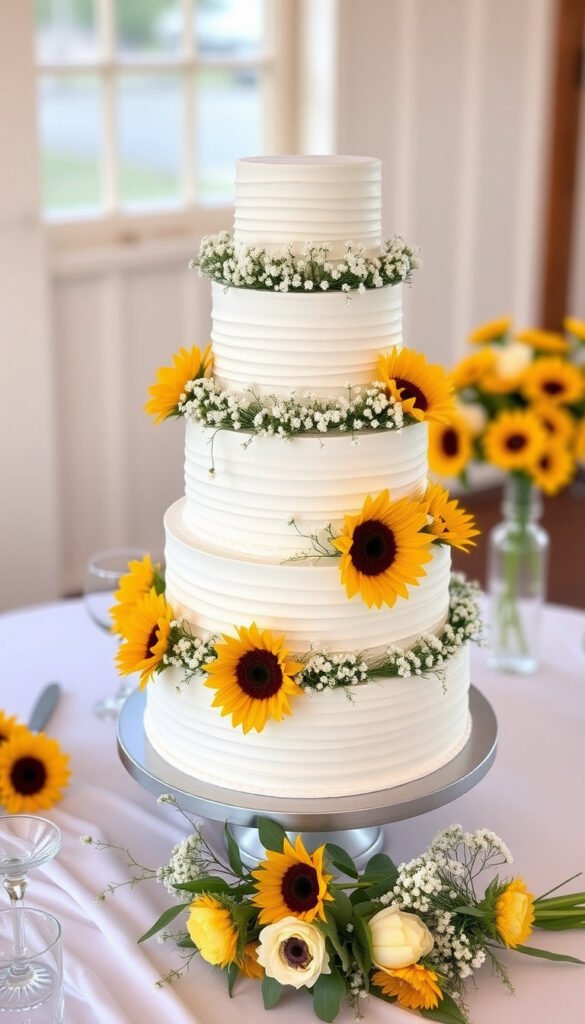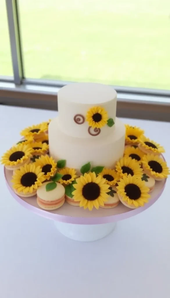 A sunflower cake isn’t just a dessert; it becomes a cheerful focal point that brightens your entire wedding theme.
