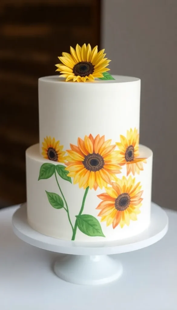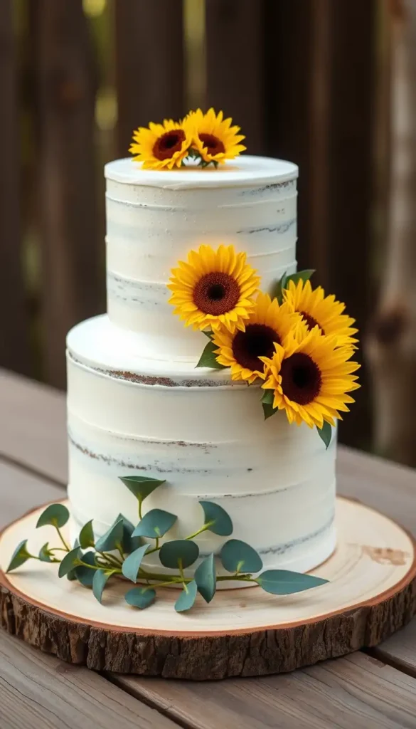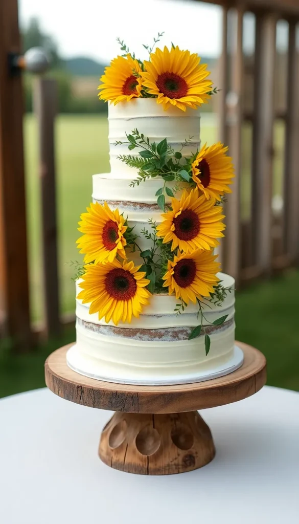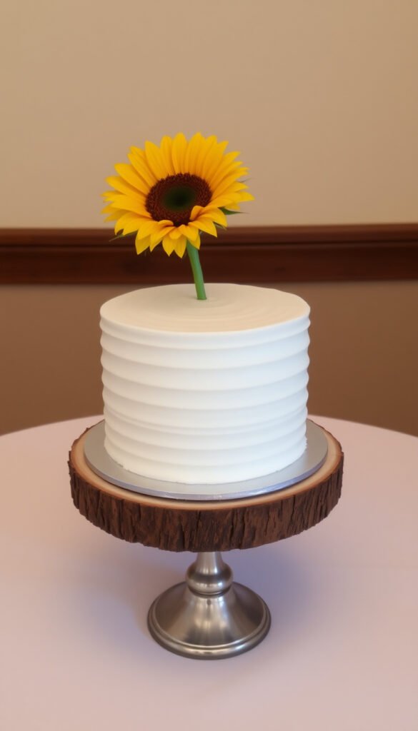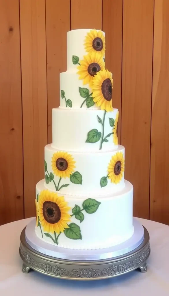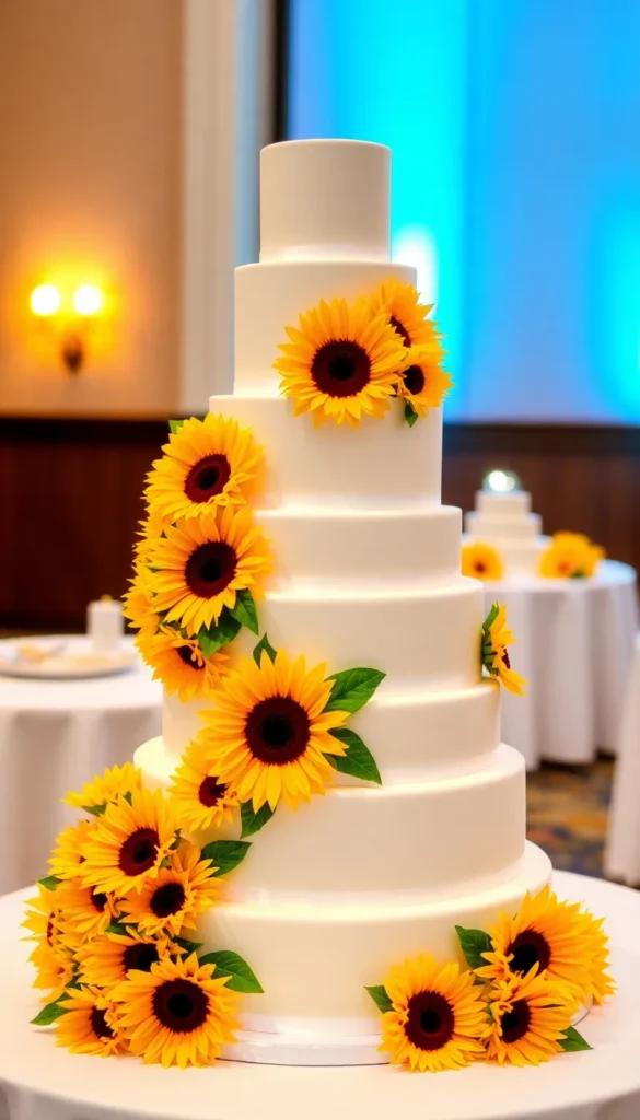 A sunflower cake isn’t just a dessert; it becomes a cheerful focal point that brightens your entire wedding theme.
