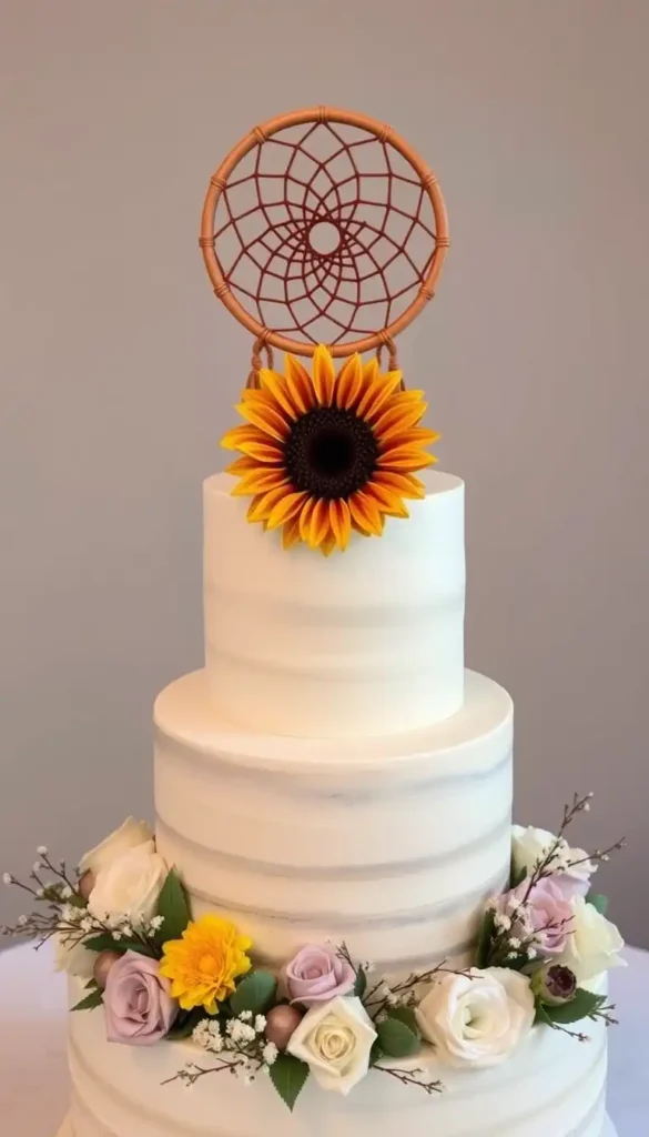 22. Dreamcatcher Cake Topper with Sunflower Center