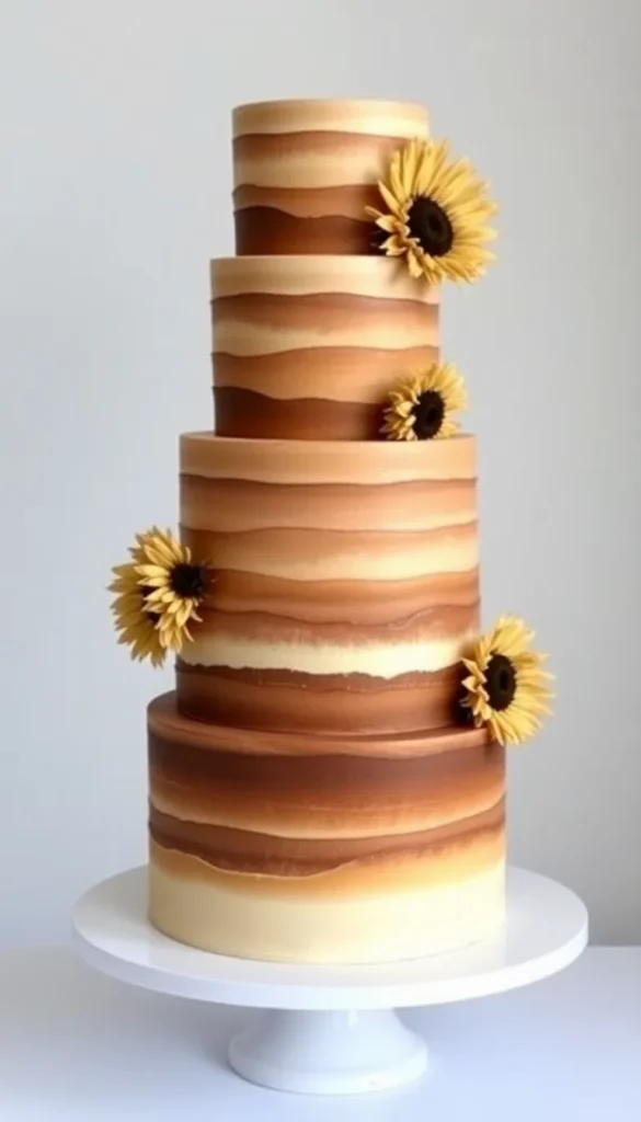 29. Earth-Tone Ombré Cake with Dried Sunflowers