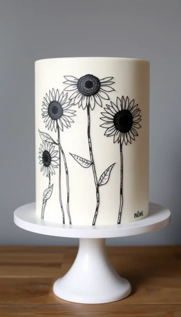 Black edible ink sketches give a minimalist yet artistic vibe.