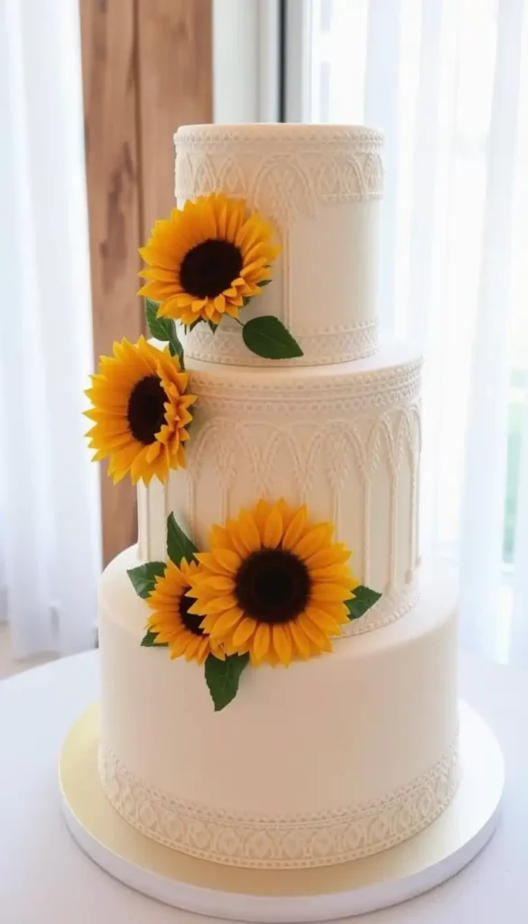 If you want to create a simple yet beautiful sunflower wedding cake at home, here’s a recipe-style guide.