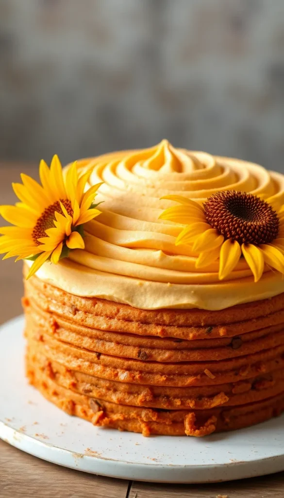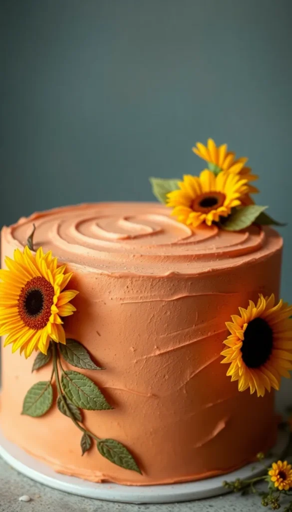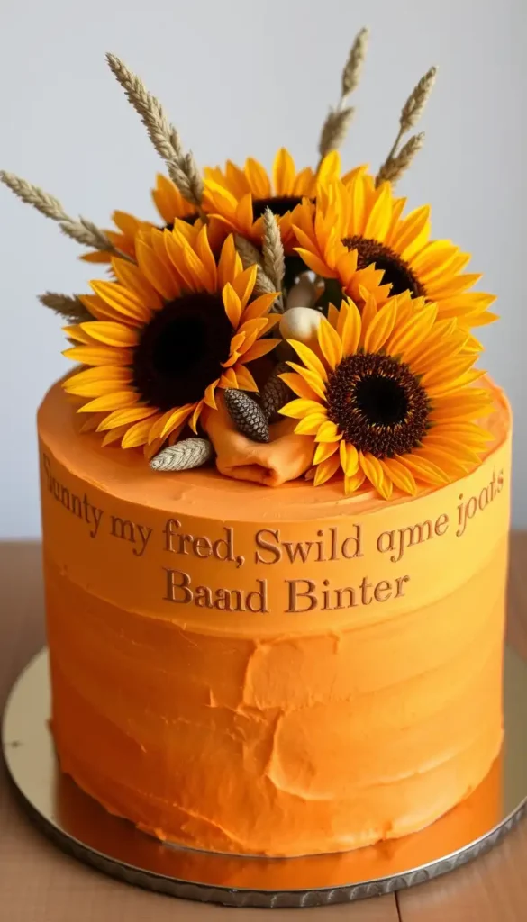 26. Rustic Orange Buttercream Cake with Wild Sunflowers
