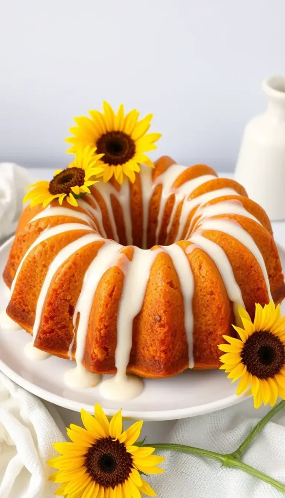 64. Rustic Sunflower Bundt Cake with Icing Drizzle