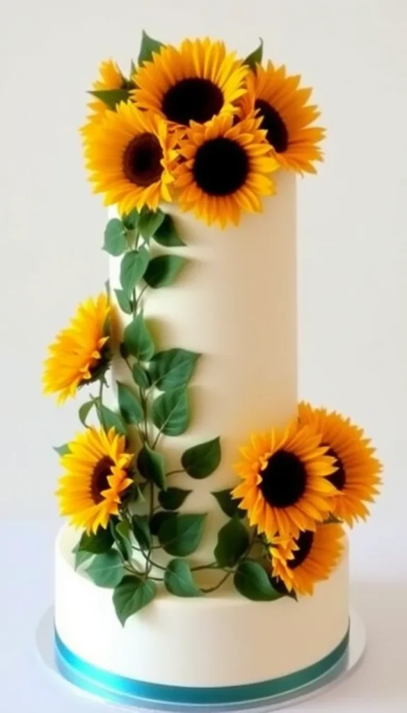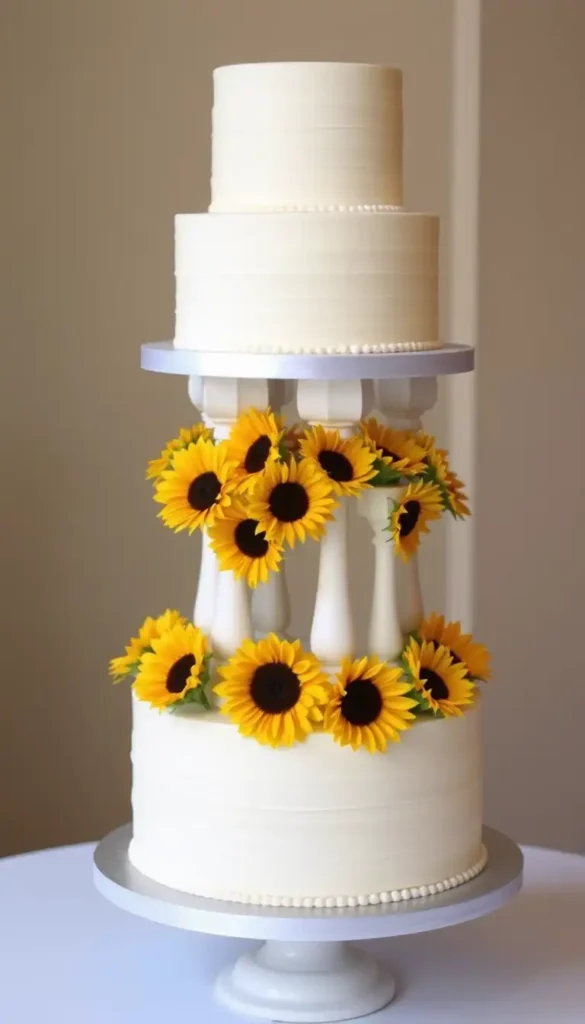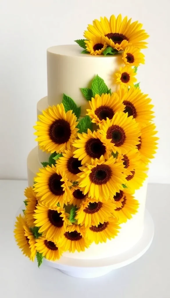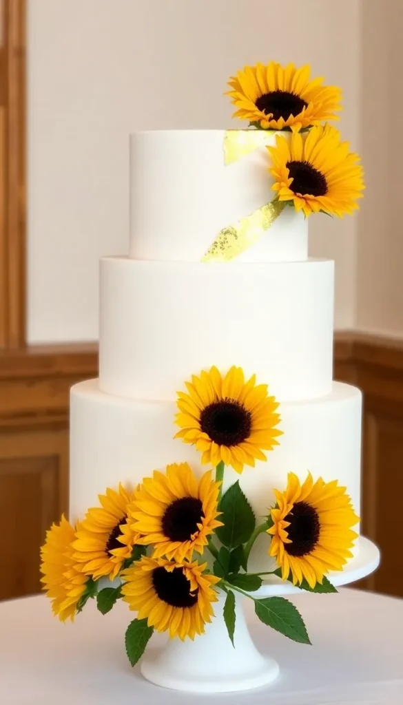 Elegant & Modern Sunflower Wedding Cake Ideas