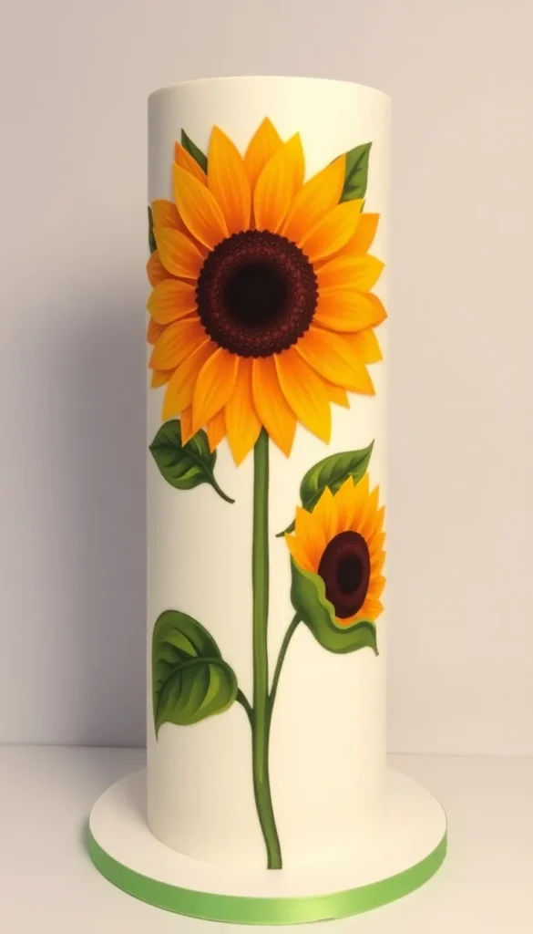 16. Tall Cylinder Cake with Vertical Sunflower Arrangement