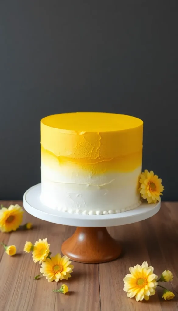28. Artistic Brush-Stroke Cake with Gold Sunflowers