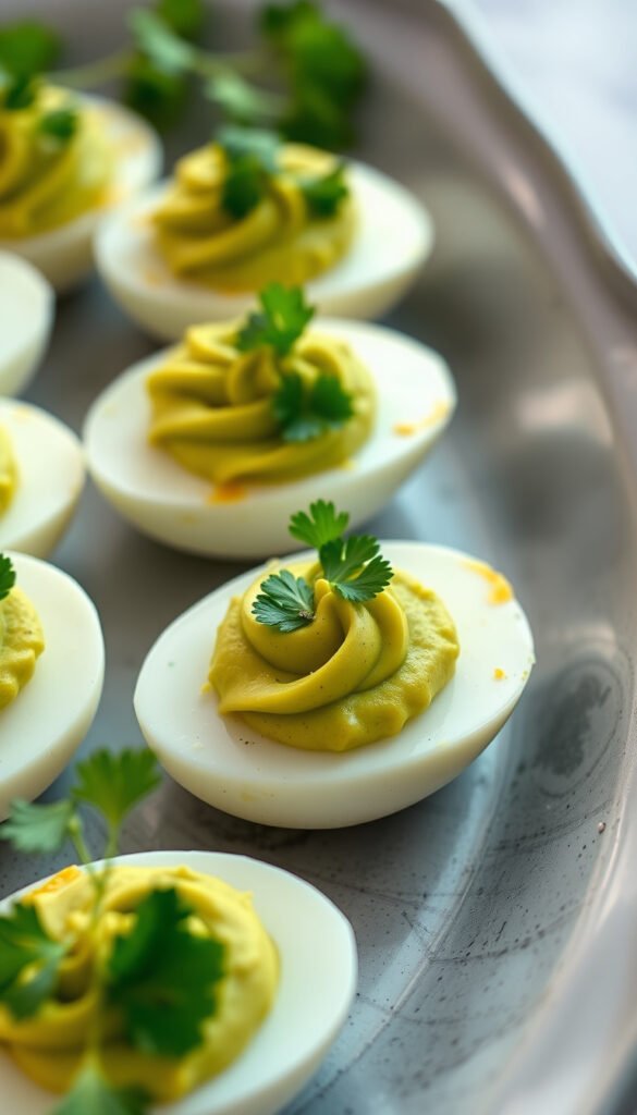 Boil eggs, peel, halve, and remove yolks. Mix yolks with mayo, mustard, and salt. Pipe back into whites and sprinkle paprika.