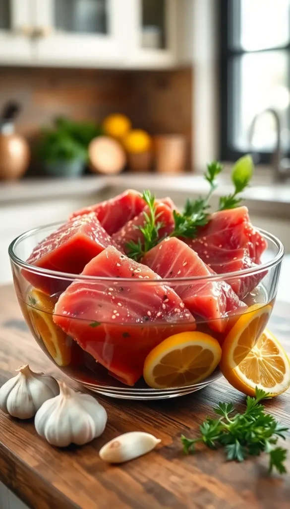 Pro Tip: Flip the tuna halfway through marinating for even flavor.