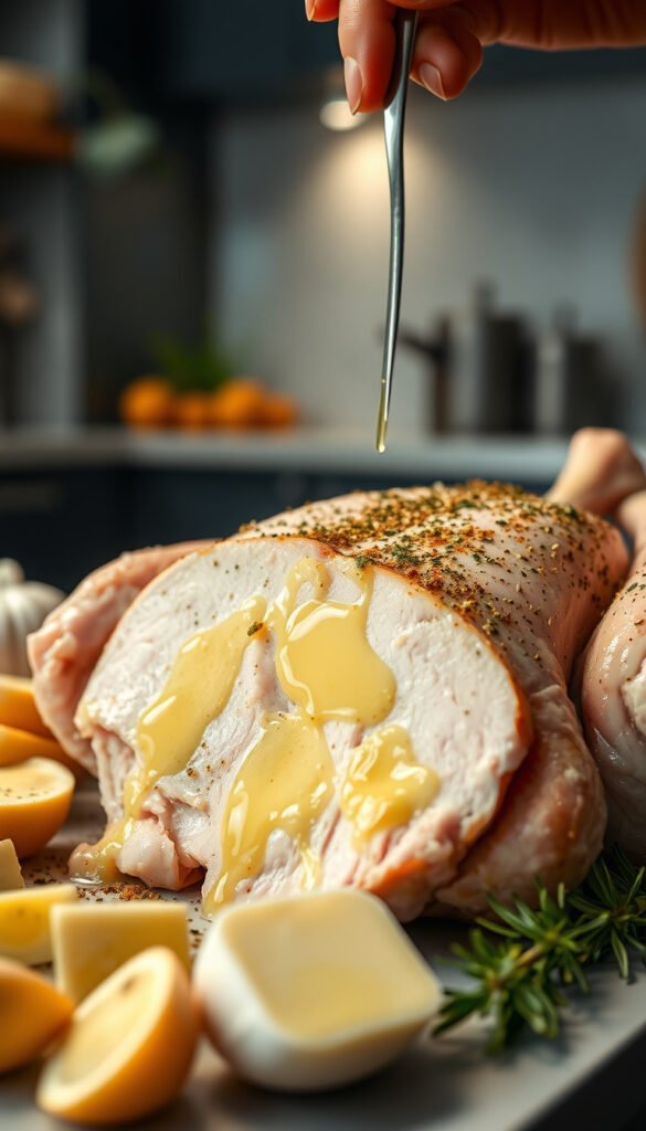 Blend into a paste. Rub under skin for maximum juiciness.