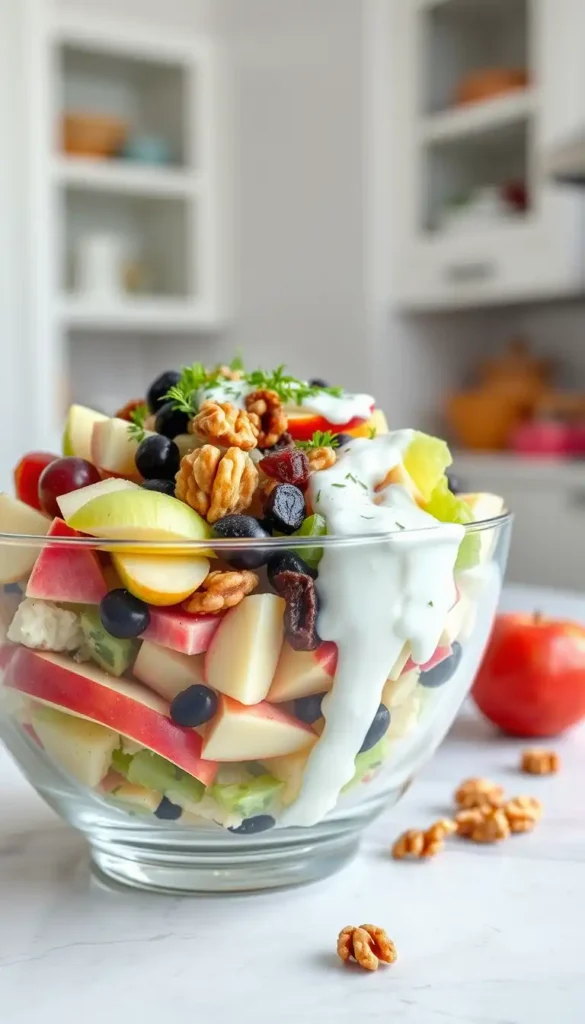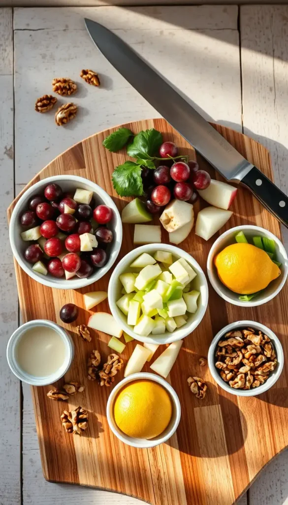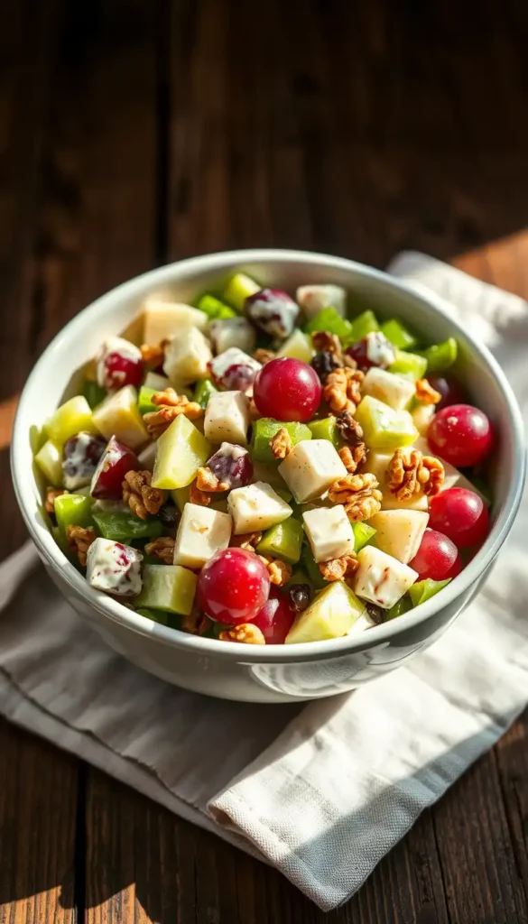 Let the Waldorf salad chill in the refrigerator for 15–30 minutes. This allows the flavors to blend beautifully.