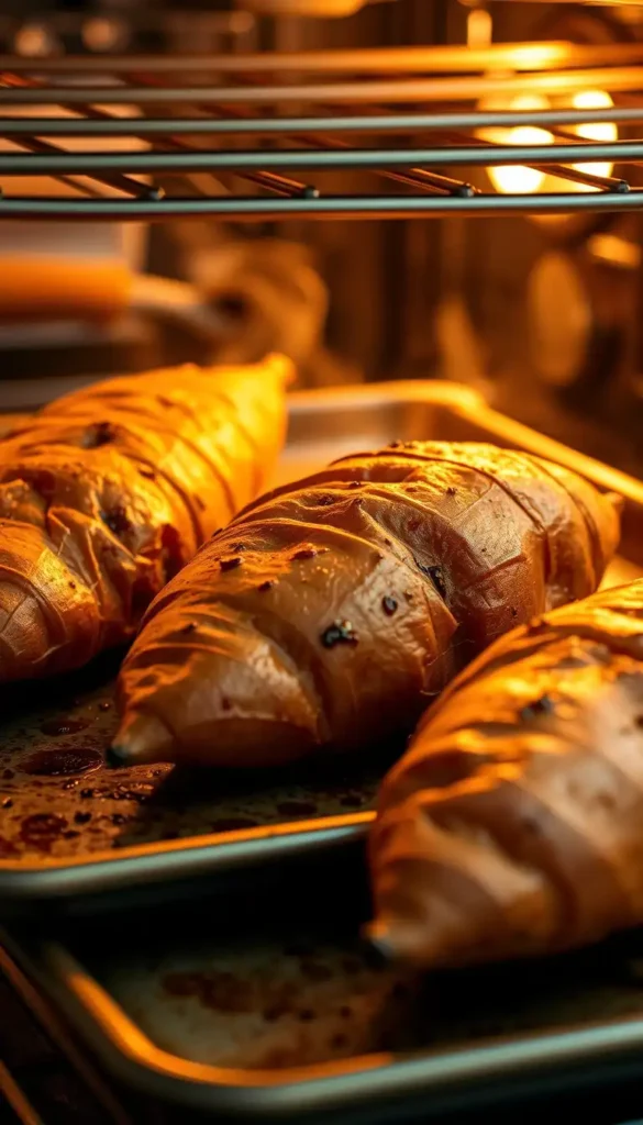 - Use a baking stone or preheated baking sheet: For a crispier skin, place sweet potatoes on a hot surface in the oven.